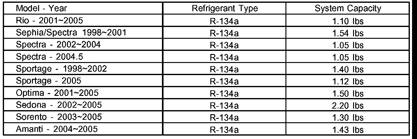 SOURCE: KIA Technician Times Volume 7 Issue 5, 2004TITLE: A/C Refrigerant and Lubricant Guidelines