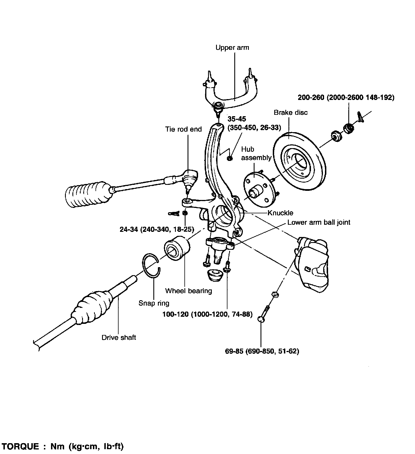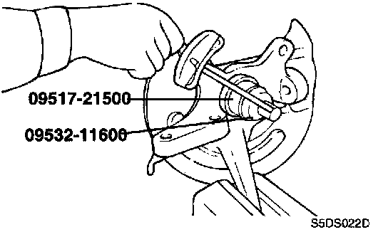 5. Tighten the hub to the knuckle to 200 Nm (2000 kg cm, 148 ft. lbs.) with the special tool.