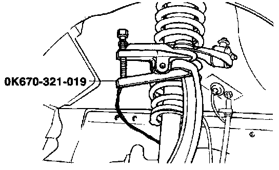 10. Using the special tool, disconnect the upper arm from the knuckle.