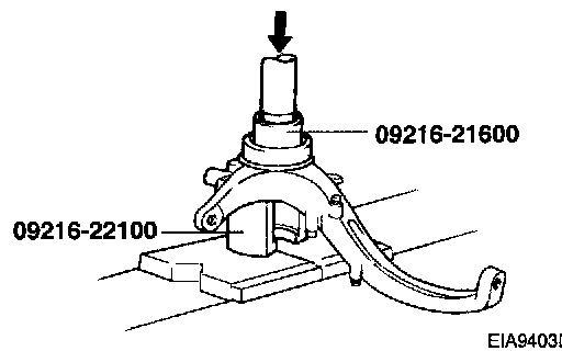 NOTE: Do not press the outer race of the wheel bearing. That will cause damage of the bearing assembly.
