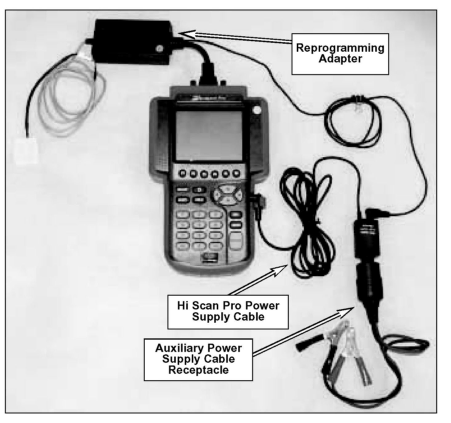 - Be careful not to disconnect any cables connected to the vehicle or Hi-Scan Pro during the reprogramming procedure.