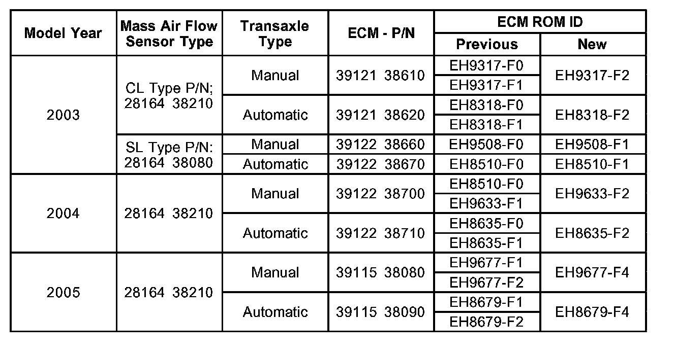 This bulletin provides information relating to an Optima ECM upgrade. Some 2003 - 2005MY Optima vehicles may experience hesitation for a short period of time after an initial cold start.