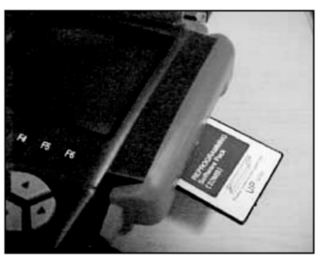 1. Remove the system software card from the Hi-Scan Pro and insert the blue reprogramming software card with the new ECM program into the Hi-Scan Pro upper slot.