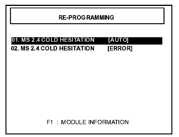 - 1. Turn the ignition switch to the ON position. Turn the Hi-Scan Pro ON and press ENTER. Select option #29 "MS 2.4 Cold Hesitation" and press ENTER. Select option "MS Cold Hesitation [ERROR]" and press ENTER.