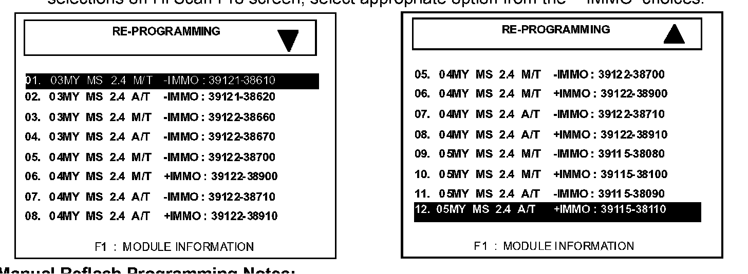 Note: U.S. Spec. Optima vehicles do not have immobilizer systems. Disregard + IMMO selections on Hi Scan Pro screen; select appropriate option from the - IMMO choices.
