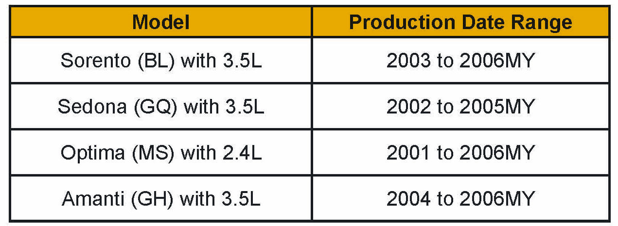 This bulletin provides information relating to Sorento (BL) 3.5L 2003-2006MY Sedona (GQ) 3.5L 2002-2005MY, Optima (MS) 2.4L 2001-2006MY, Amanti (GH) 3.5L 2004-2006MY vehicles. In affected vehicles an intermittent short to ground in a circuit only intended for testing purposes may cause the MIL to illuminate and a DTC P1330 (Spark Timing Adjust) to be stored. As soon as the fault disappears the MIL may turn off and the fault code can also be immediately erased by the engine management system making it hard to diagnose the concern.