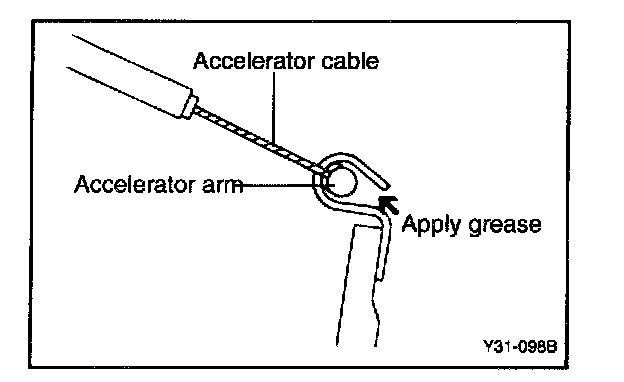 1. When installing the return spring and accelerator arm, apply multi-purpose grease around each moving point of the accelerator arm.