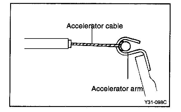 3. Securely install the resin bushing of the accelerator cable on the end of the accelerator arm.
