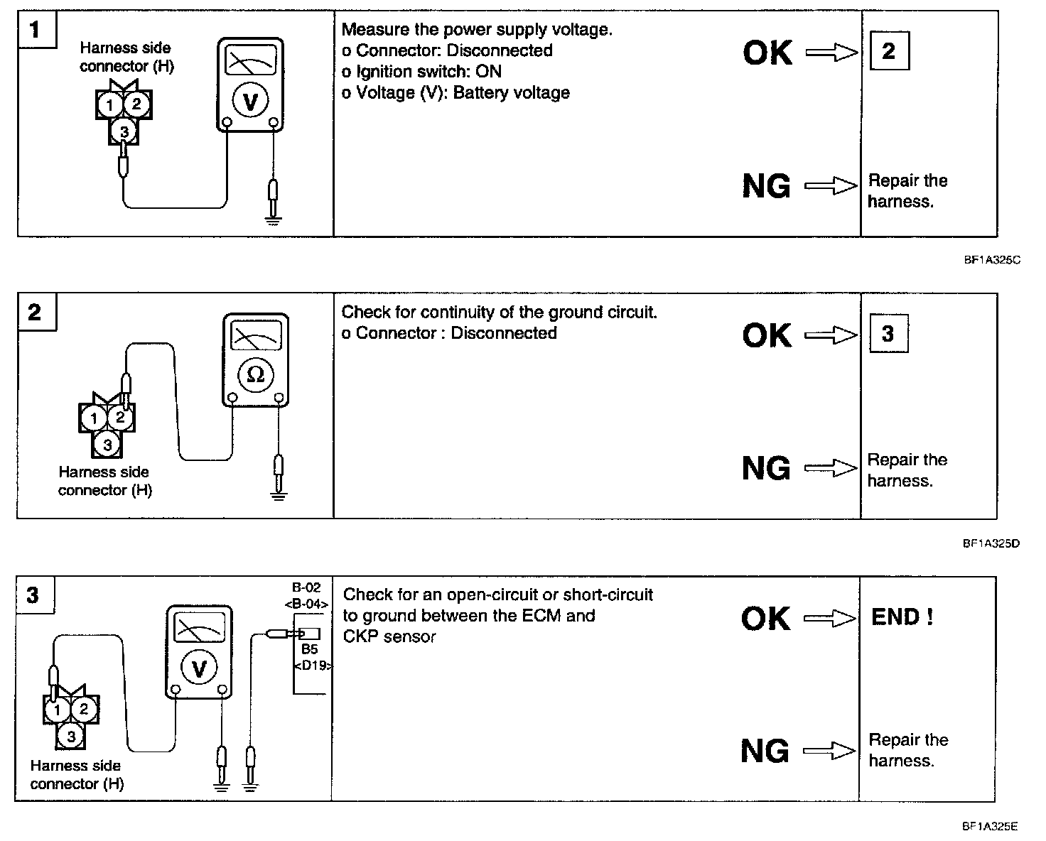 1. If unexpected shocks are felt during driving or the engine stalls suddenly, shake the crankshaft position sensor harness. If this causes the engine to stall, check for poor sensor connector contact.