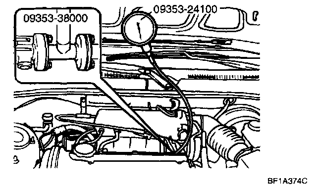 10. Stop the engine and check for a change in the fuel pressure gauge reading, which should hold for approximately 5 minutes.
