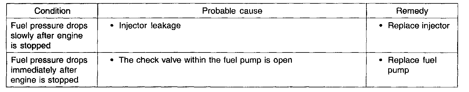 If the gauge indication drops, observe the rate of drop. Determine and remove the causes according to the table.