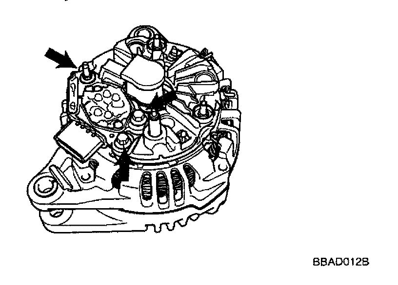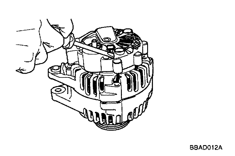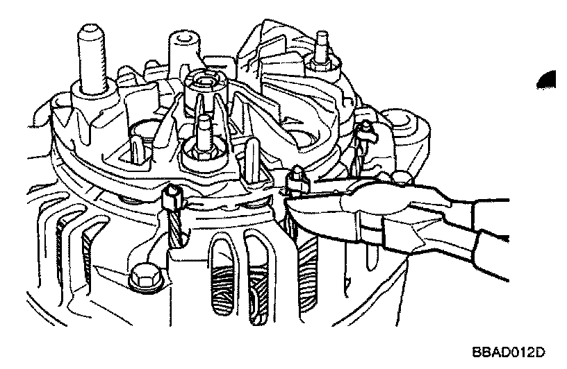 Cutting the stator coil lead line connection to the rectifier may damage the generator because the rectifier and the stator coil lead line are soldered together. So, do not disassemble further.