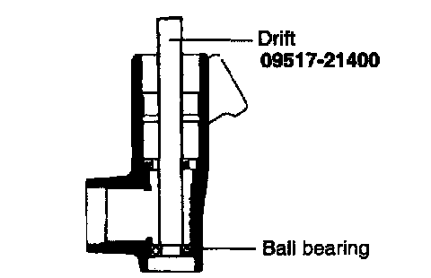 22. Drive out the ball bearing using special tool (09517-21400) and hammer.