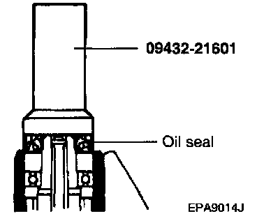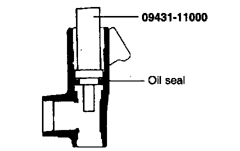 5. Set the scribed side of the oil seal (inner) in the special tool (09431-11000) and install in the gear housing.