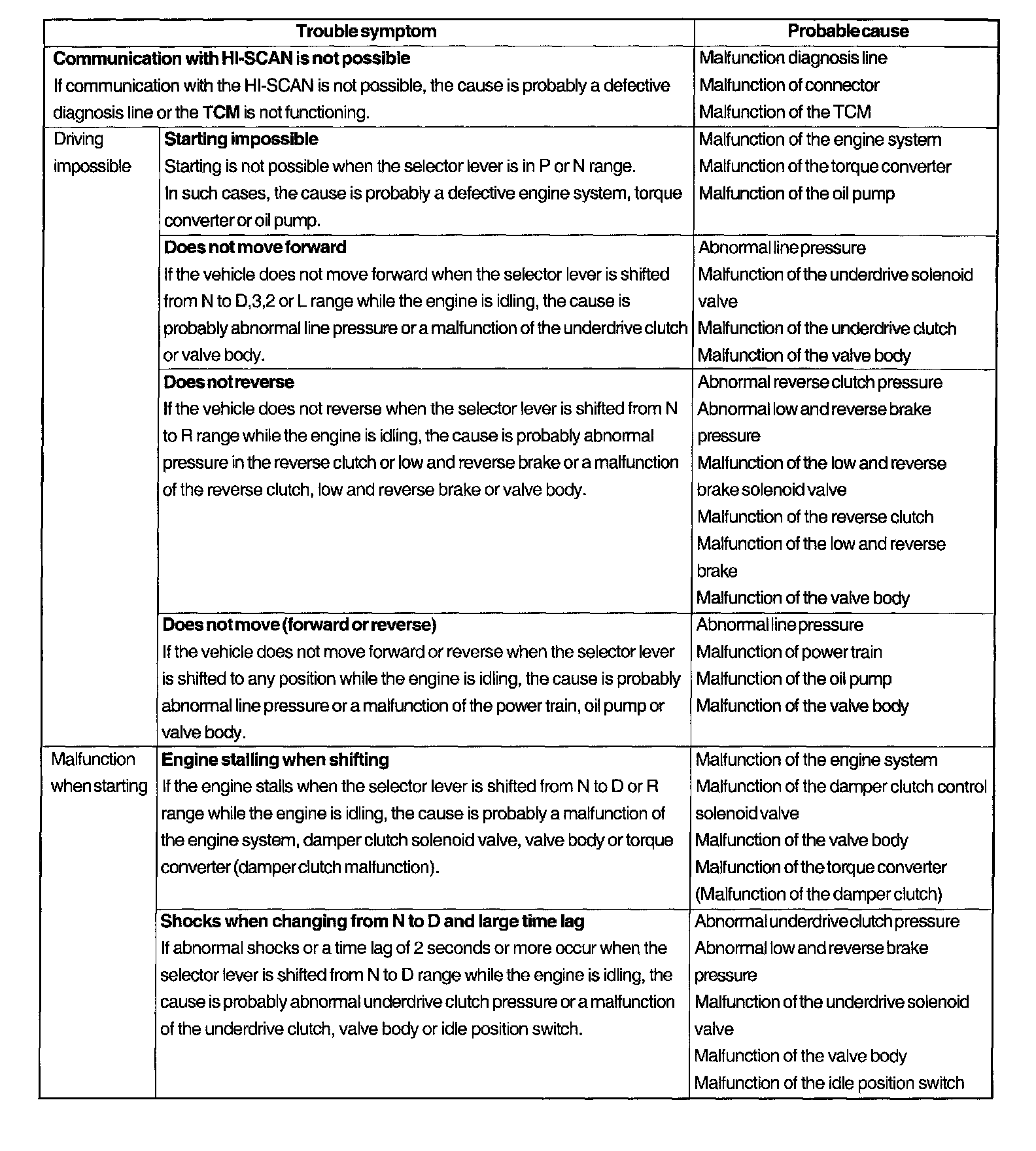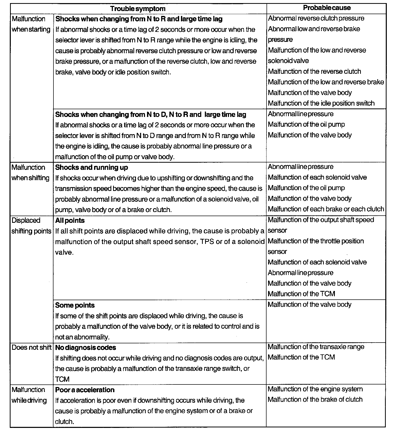 Inspection Chart For Trouble Symptoms