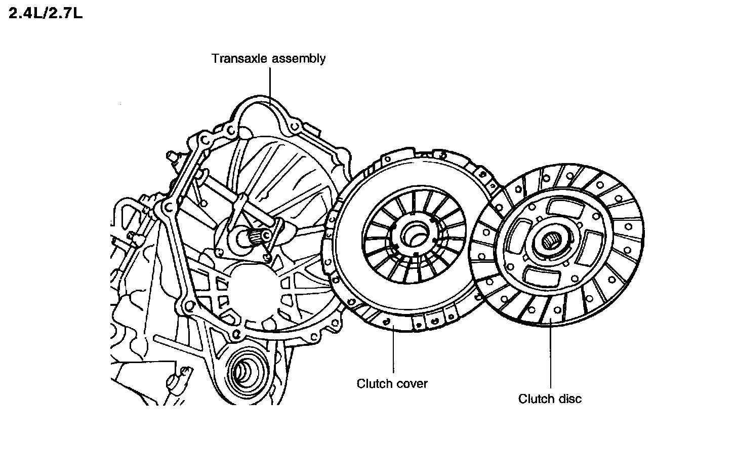 Clutch cover bolt 2.4L/2.7L - 20 - 27 Nm (200 - 270 kg-cm, 15 - 20 ft. lbs.)