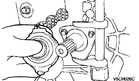 3) Widen the space of snap ring by pushing the bearing as shown in the illustration.
