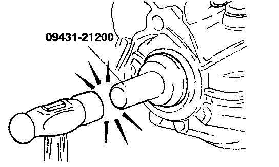 3. Using the special tool (09431-21200), tap the drive shaft oil seal into the transaxle.