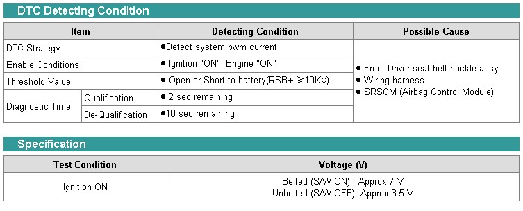 The seat belt buckle switch (passenger side/RH) circuit consists of the SRSCM (Airbag control module) and front passenger seat inner belt assy. In event of accident, pretensioner and passenger's side airbags will not operate when the buckle switch are unlocked, to save parts and reduce repair cost.