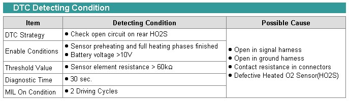 ECM sets DTC P0136 if the ECM detects that the rear HO2S signal line is open.