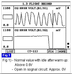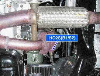 The rear heated oxygen sensor is mounted on the rear side of the Catalytic Converter (warm-up catalytic converter) or in the rear exhaust pipe, which is able to detect catalyst efficiency. The rear heated oxygen sensor (HO2S) produces a voltage between 0V and 1V. This rear heated oxygen sensor is used to estimate the oxygen storage capability. If a catalyst has good conversion properties, the oxygen fluctuations are smoothed by the oxygen storage capacity of the catalyst. If the conversion provided by the catalyst is low due to aging, poisoning or misfiring, then the oxygen fluctuations are similar to signals from the front oxygen sensor.