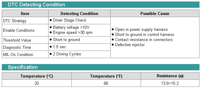 ECM sets DTC P0262 if the ECM detects that injector (Cylinder #2) control line is shorted to ground.