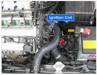 With the ignition switch in the ON or START position, voltage is applied to the ignition coil. Each ignition coil consists of two coils. High tension leads go to each cylinder from the ignition coils. The ignition coils fire two spark plugs on every power stroke (the cylinder under compression and the cylinder on the exhaust stroke). The Engine Control Module (ECM) provides a switching circuit to ground for energizing the primary ignition coils. The ECM uses the crankshaft position sensor and camshaft position sensor signal to time the energizing of the coil. When a primary ignition coil is energized and de-energized, the secondary coil produces a high voltage spike to the attached spark plugs.