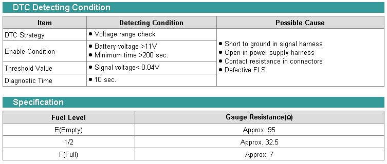 The ECM sets DTC P0462 if ECM detects that fuel level signal is less than the threshold value.