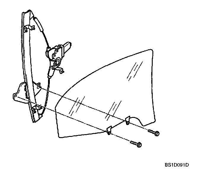 2. Loosely install two glass mounting bolts on window regulator assembly.