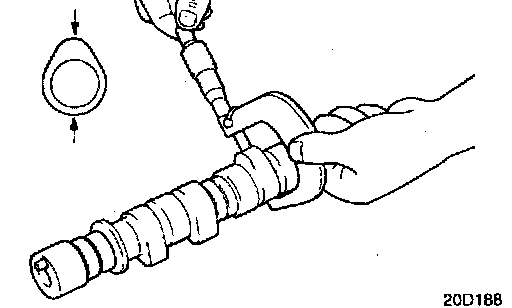 2. Check the oil seal lip contacting surface or camshaft. If it is worn in stages, replace the camshaft.