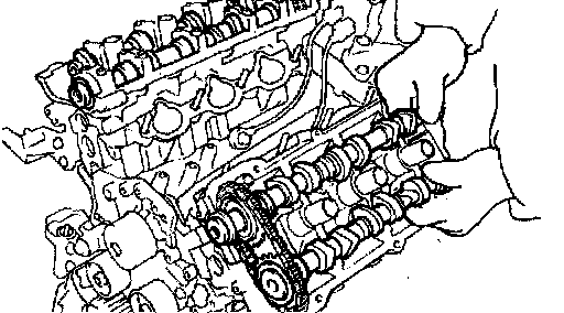 2. Align the camshaft timing chain with the intake timing chain sprocket and exhaust timing chain sprocket as shown.