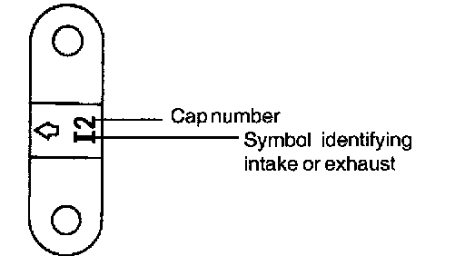 4. Install the bearing caps. Check the markings on the caps for intake/exhaust identification symbol.