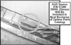 2003 MY Optima SE models are equipped with Full Automatic Temperature Control or FATC, which also incorporates an Air Quality System or AQS. The system, consisting of a control button in the control head and a sensor located just behind the grille (see photos below), can operate independently or in conjunction with the A/C.