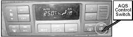 The AQS feature can be switched on or off by using the button on the control head (see photo). Note that AQS will be disabled/switched off whenever Defrost mode is selected. People unaware of the AQS feature may perceive a defect because of the seemingly random switching from Fresh to Re-circ and back. Before attempting to diagnose concerns of spontaneous switching between fresh and recirc, make sure customer is aware of, and understands the AQS feature as outlined on page 4-75 of the Owners Manual.