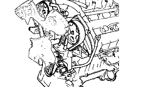 NOTE: Insert and install idler pulley to the pin spring that is pressed and inserted in the water pump boss.
