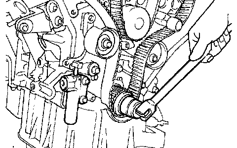1. Rotate the crankshaft in 2 turns clockwise and measure the projected load of auto tensioner in the TDC (# 1 Compression stroke) after 5 minutes.
