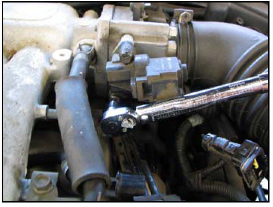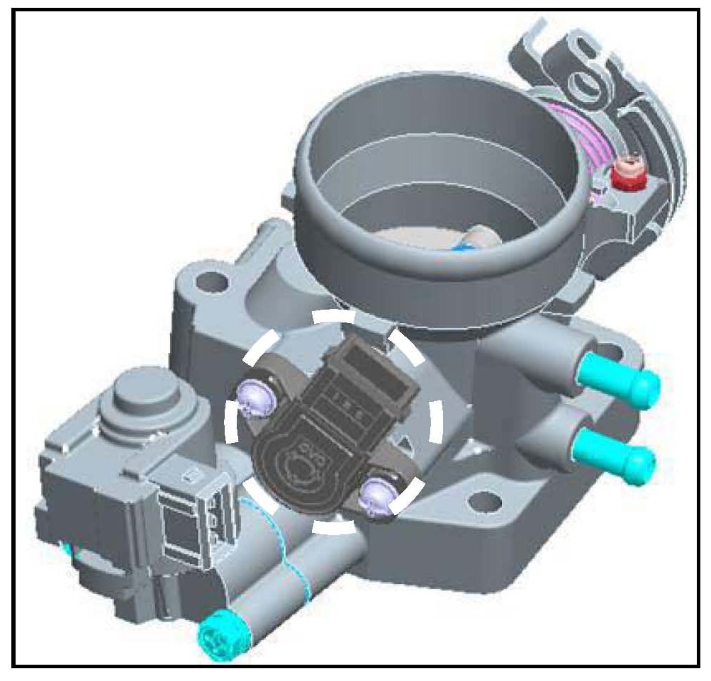 4. Install the new TPS sensor onto the throttle body and torque the two screws (1.5 - 2.5 Nm/13.2 - 21.6 in-lbs) reconnect the TPS connector.
