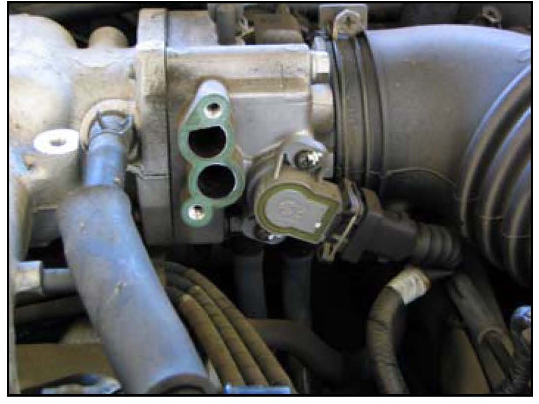 2. Disconnect the idle speed control actuator (ISCA) connector and remove the two retaining bolts. Remove the ISCA and gasket.