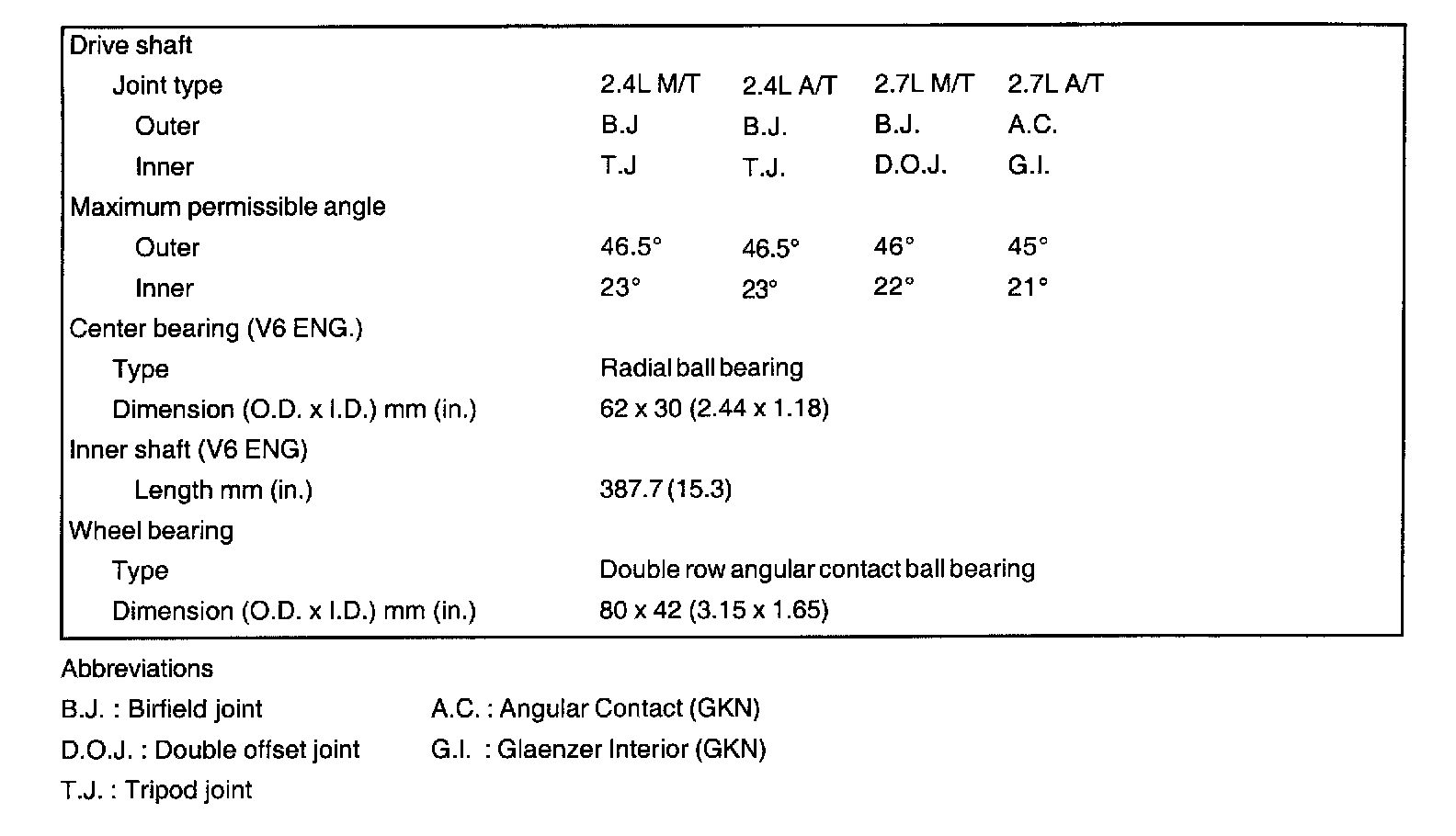 Front wheel bearing starting torque 1.8 Nm (18 kg cm, 16 in lbs)