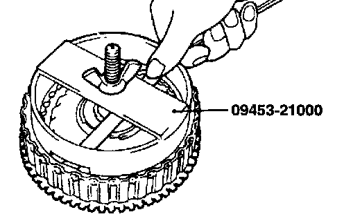 16. Install special tools, 09453-21000 as shown, then check the clearance between the snap ring and the reaction plate using a feeler gauge.