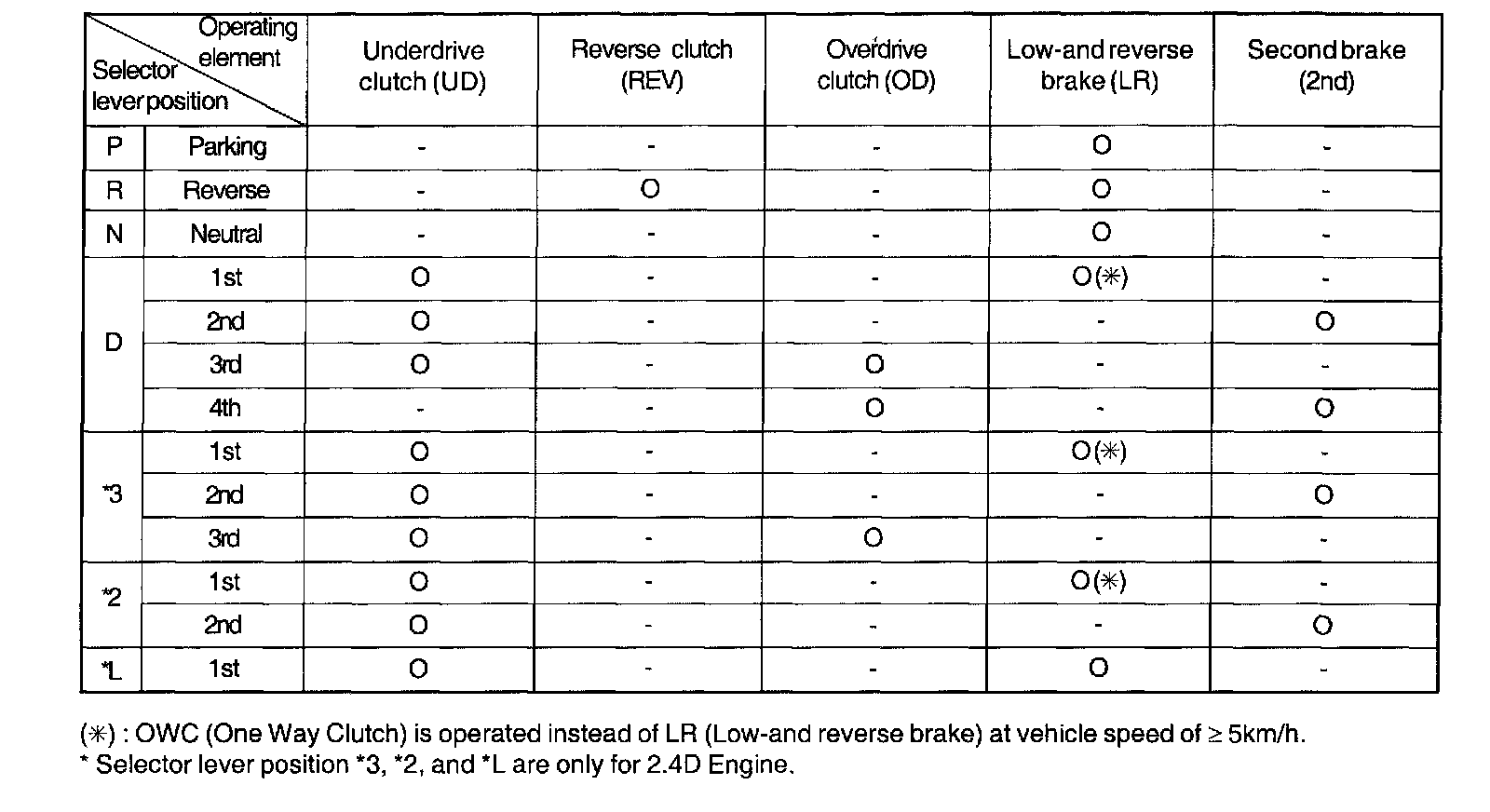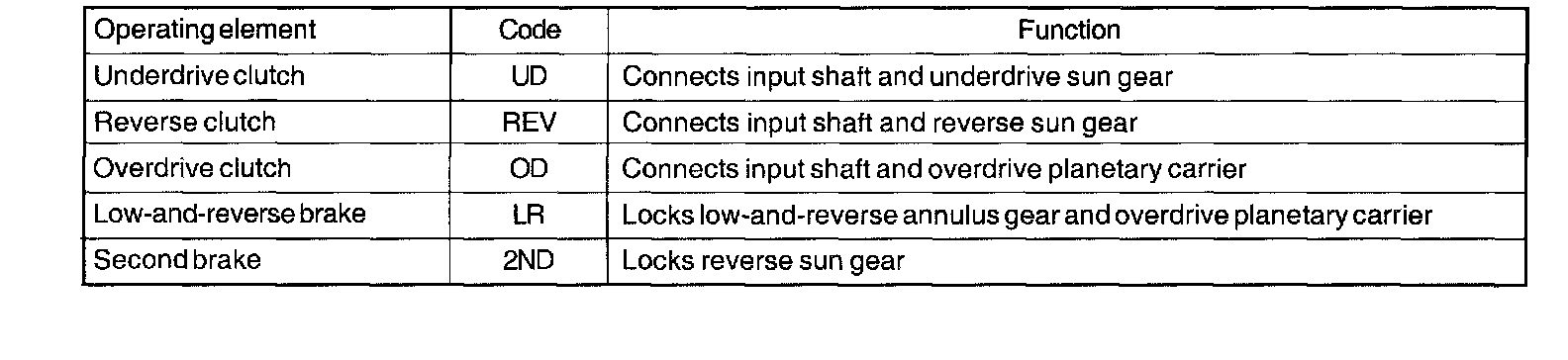 ELEMENT IN USE AT EACH POSITION OF SELECTOR LEVER