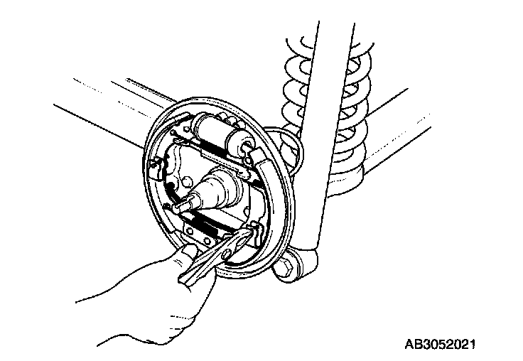 6. Remove the brake shoe hold-down springs and pins.