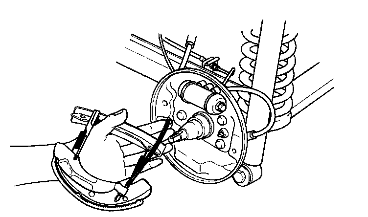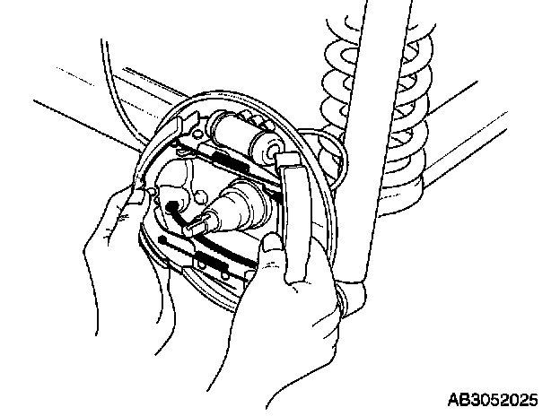 7. Position the brake shoe assembly to the wheel cylinder.