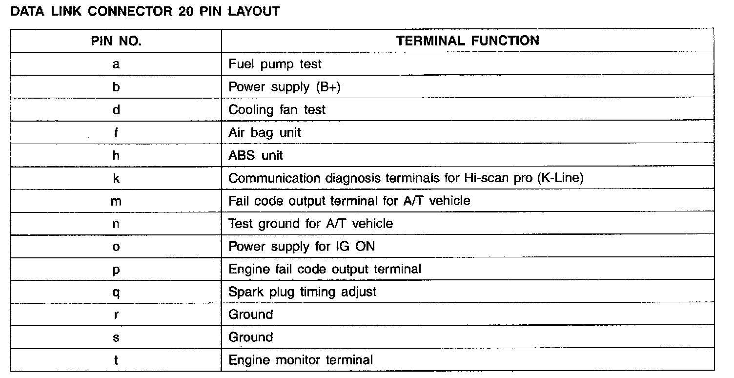 Data Link Connector Pinout: