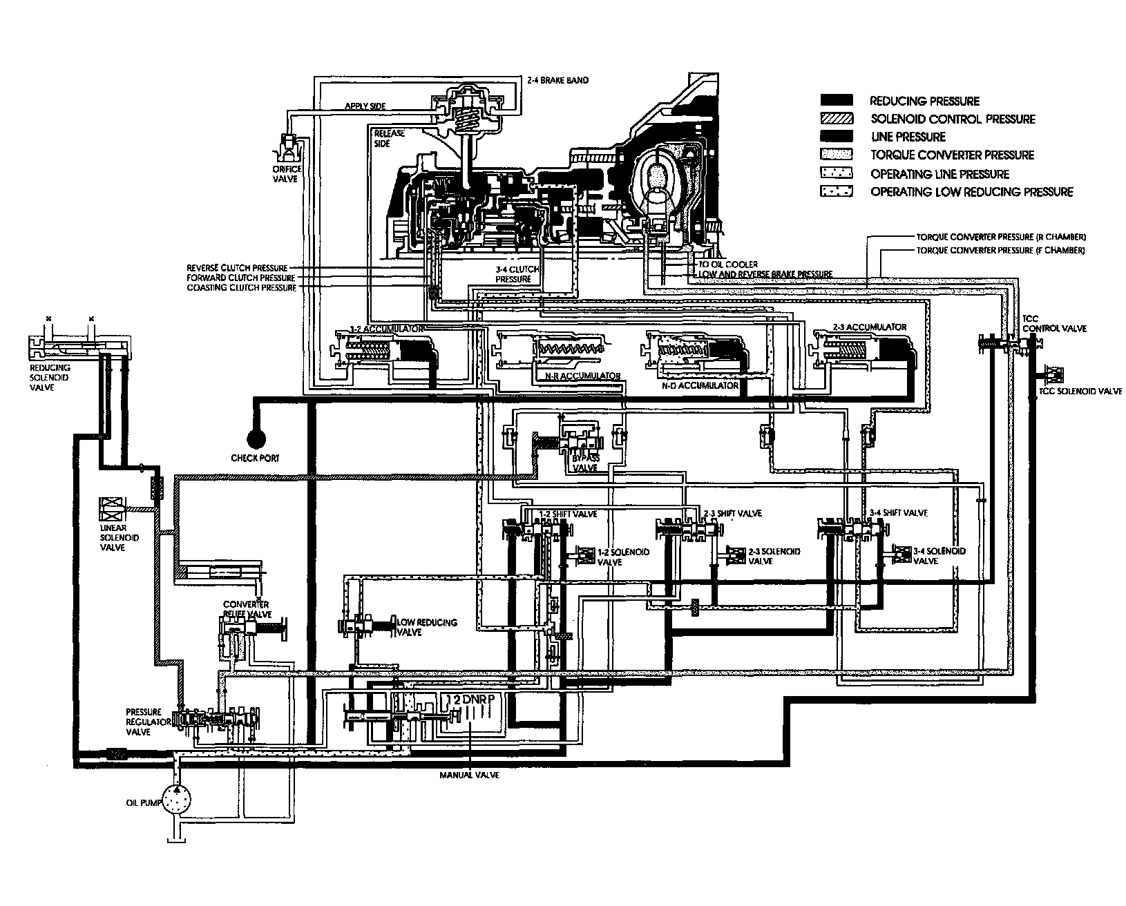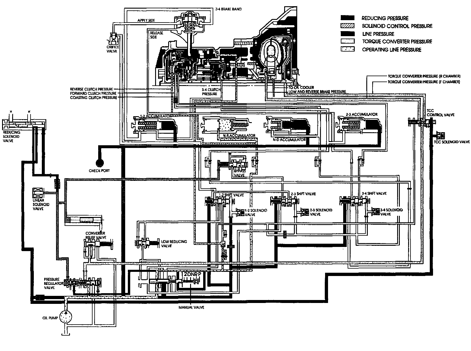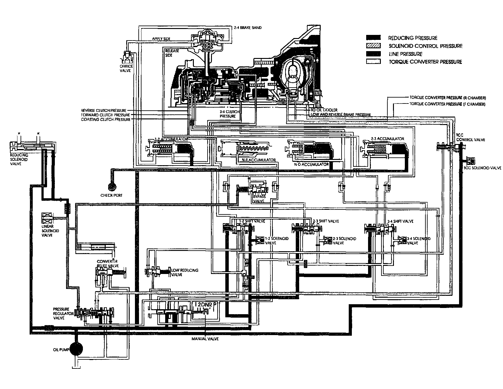 HYDRAULIC CIRCUIT (D RANGE: O/D GEAR TORQUE CONVERTER CLUTCH ON):