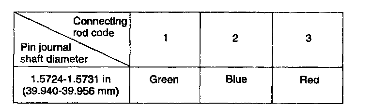 1) Connecting rod bearing selection table