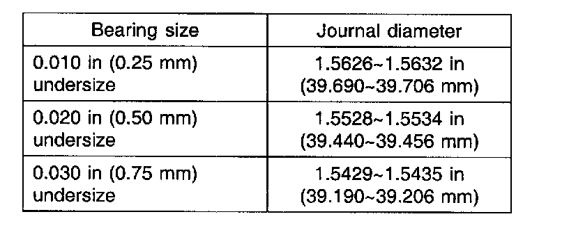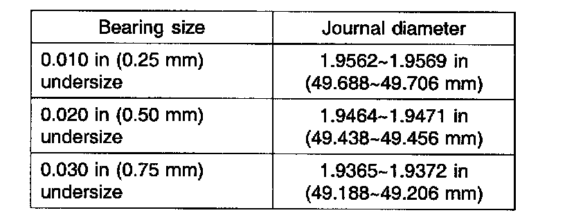 MAIN JOURNAL DIAMETER UNDERSIZES: