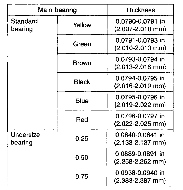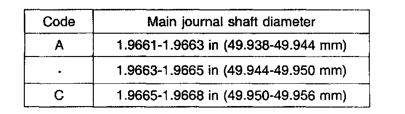 Oil clearance: 0.0010 - 0.0021 inch (0.026 - 0.054 mm)
