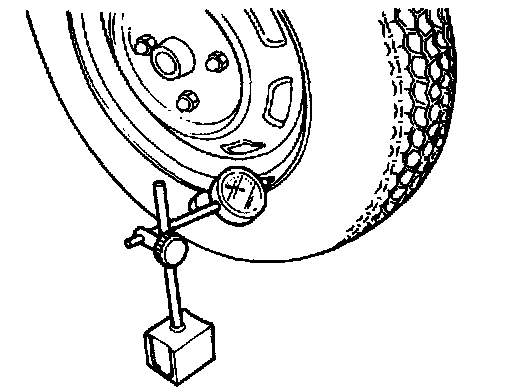 2. Set the probe of a dial indicator against the wheel, and measure the runout through one full revolution.