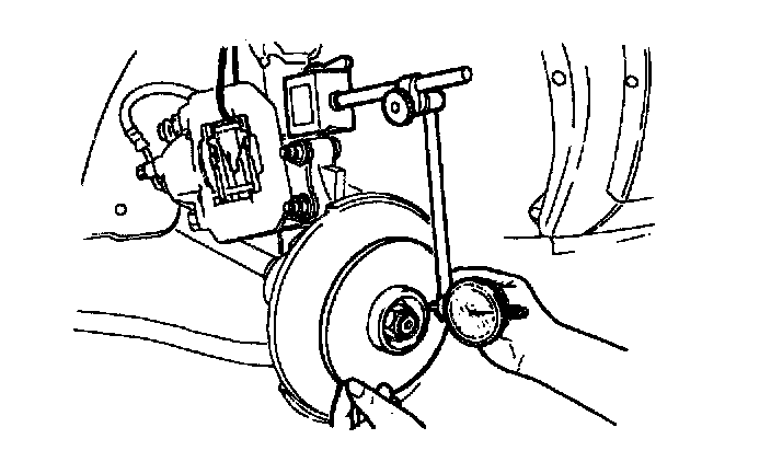 4. Set a dial gauge against the wheel hub, then push and pull the wheel hub in the axial direction and measure the axial play of the wheel bearing. If the play exceeds the specification, adjust the preload or replace the bearing.